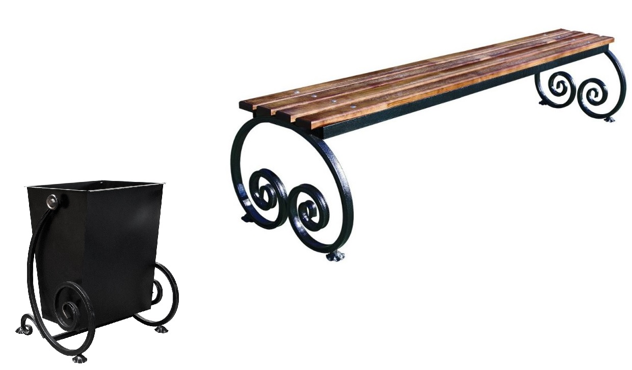 Магазин Сигнал предлагает комплект "Шарманка", состоящий из лавочки Волна 30 у урны Волна