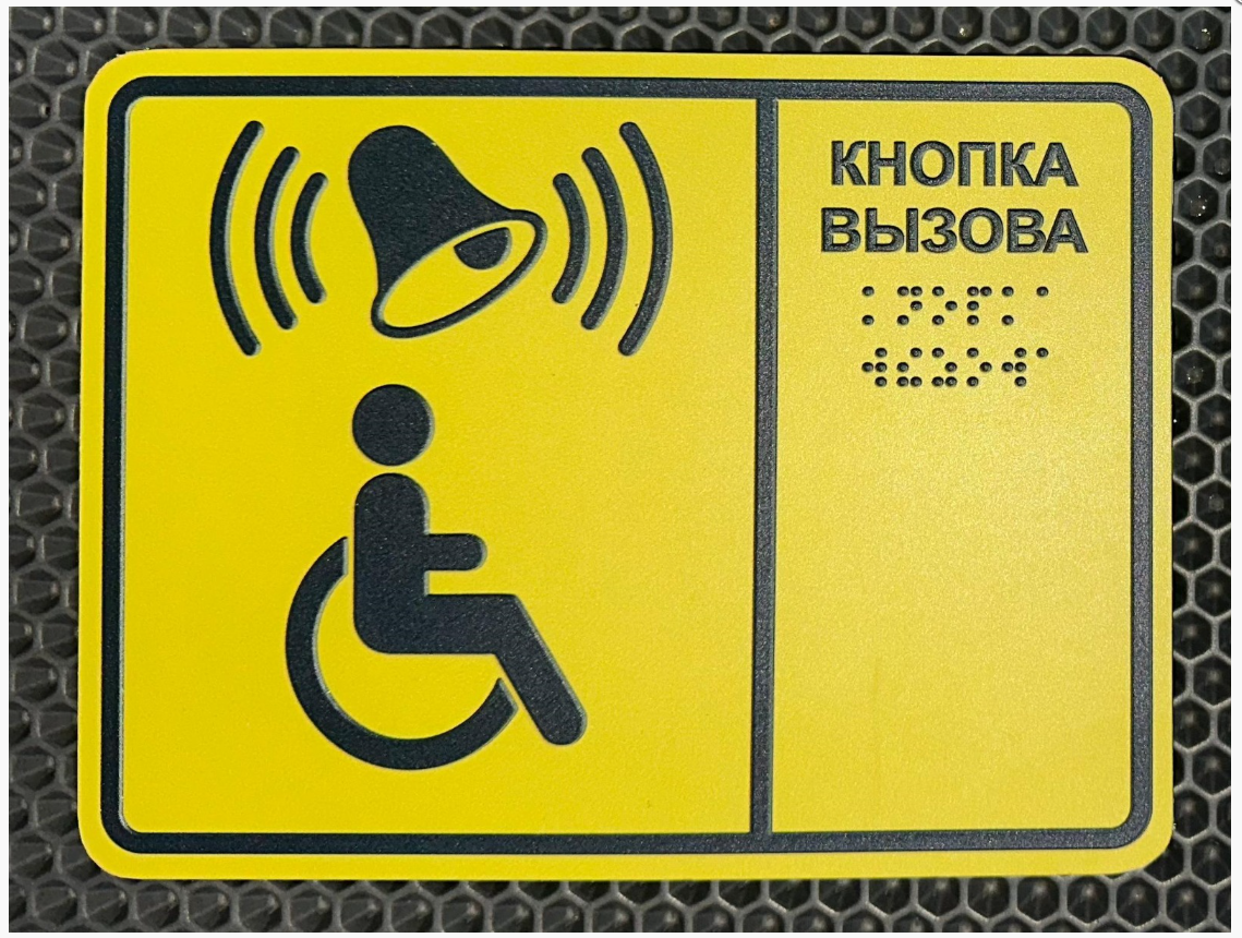 Табличка "кнопка вызова " для инвалидов желтая шрифт Брайля во Владивостоке в Биробиджане