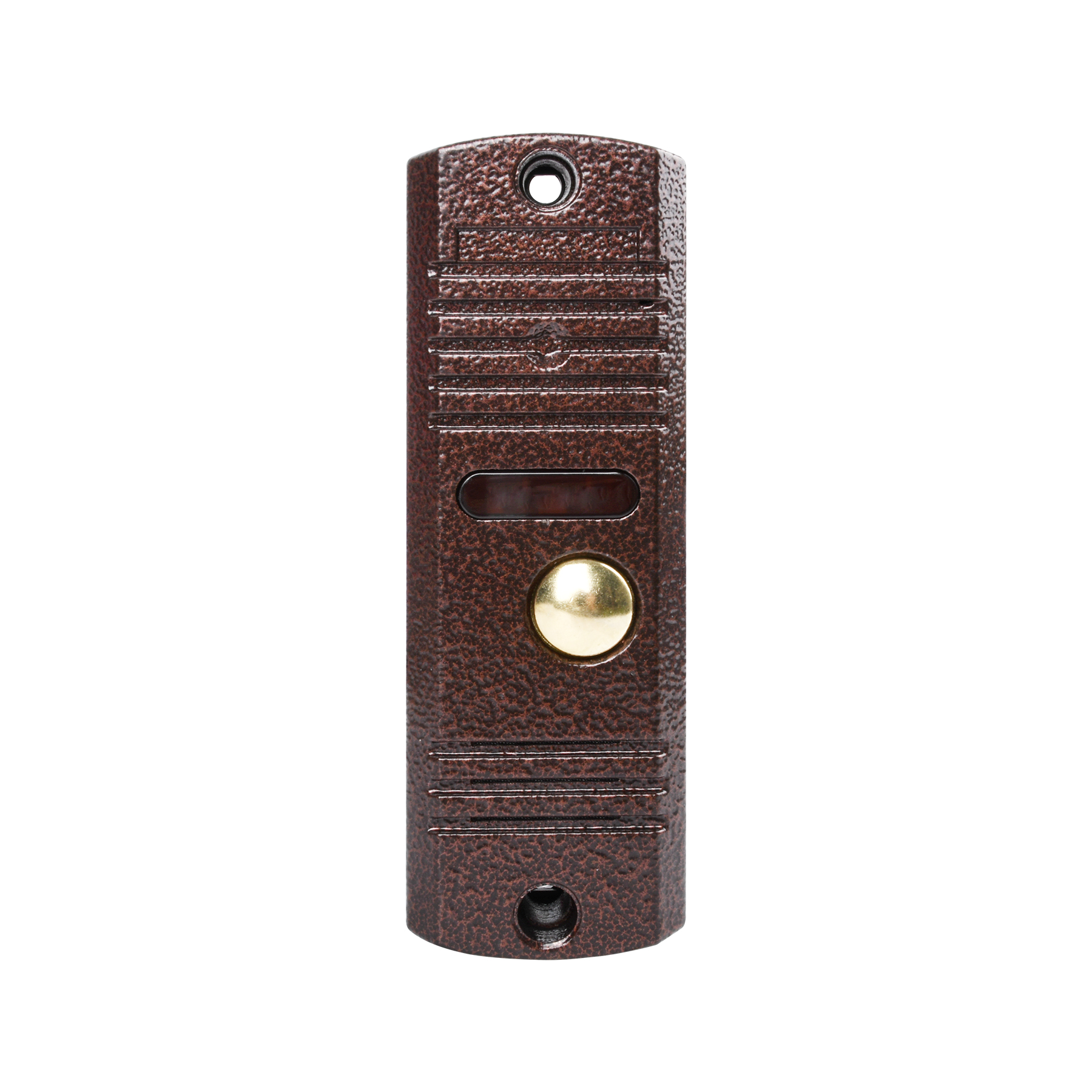 Антивандальная аудио панель на одного абонента. Исполнение корпуса для "накладной" установки из прочного алюминиевого сплава, покрытого ударопрочной порошковой краской. Кнопка вызова способна выдерживать фронтальные удары благодаря особенностям внутренней конструкции. Звуковая плата разработана российскими специалистами и обеспечивает отличное качество аудио связи между вызывной панелью и аудио трубкой домофона. Цветовая гамма состоит из трех цветов: серебряный антик, медный антик, черный. Разработана и производится в России более 20 лет.